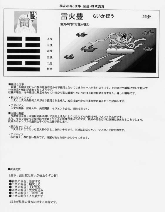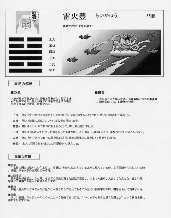 以上で 占いたい内容の結果が64卦のいづれかで易神から示されたと判断 します。それでは、次に結果の解釈の仕方について説明します。