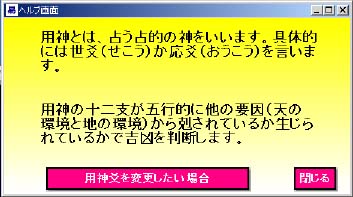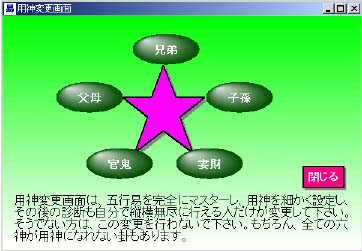 用神の説明画面(用神は下図のように変更もできます)
